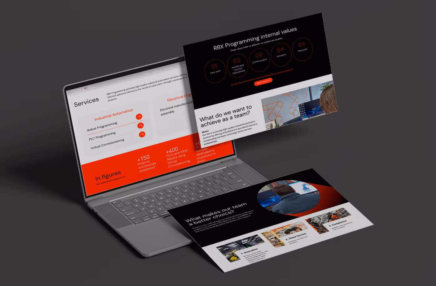 El proceso de rediseño comenzó con una inmersión en la esencia de RBX. En dicho taller, identificamos los valores fundamentales de la marca y su misión en el mercado. El nuevo logotipo y la paleta de colores fueron diseñados para transmitir modernidad, dinamismo y confianza, alineándose con la evolución de la empresa y su enfoque en la calidad y la innovación.